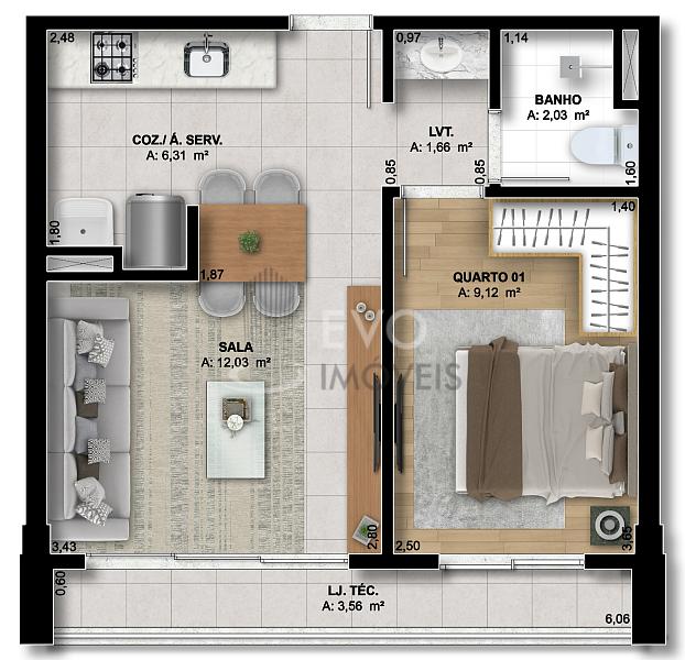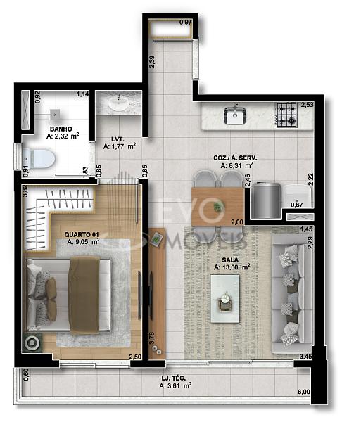 41,00 m² de área privativa