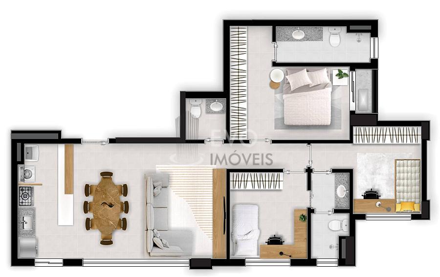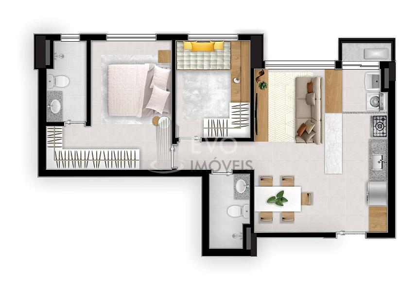 2 dormitórios (1 suíte)