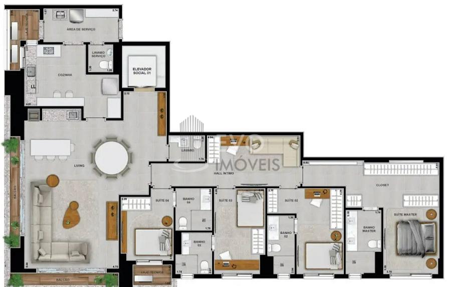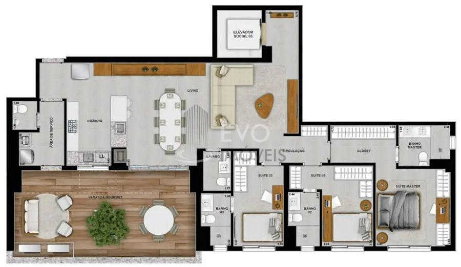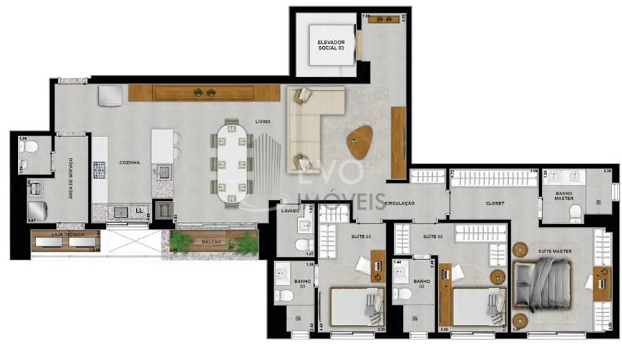 3 dormitórios (3 suítes)