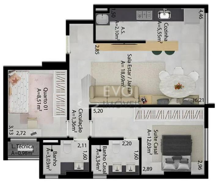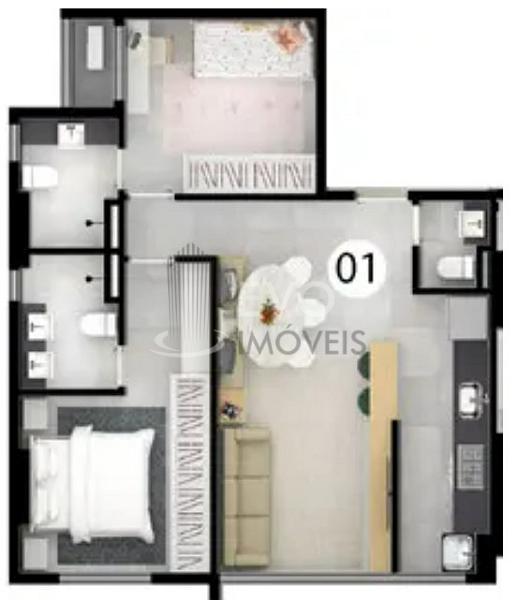 2 dormitórios (1 suíte)