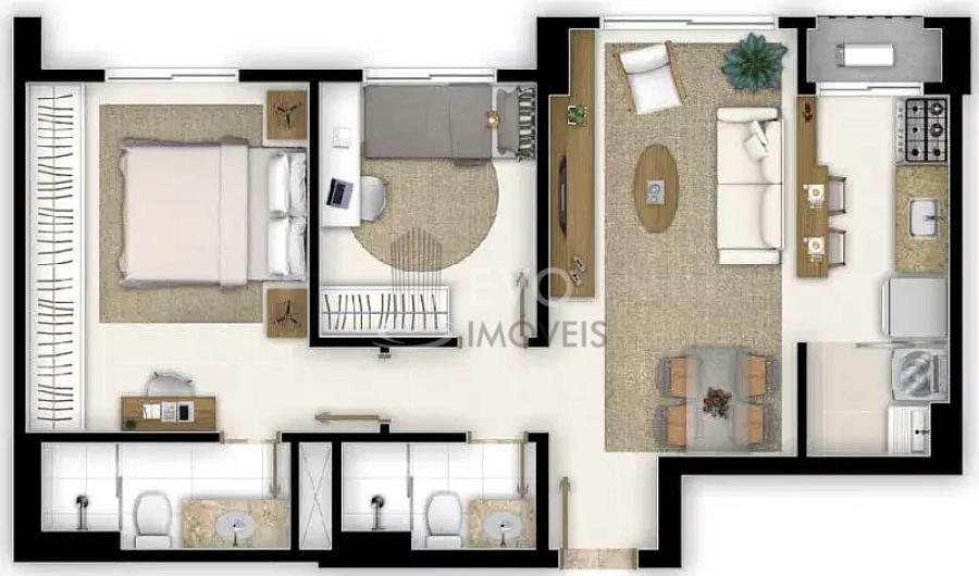 2 dormitórios (1 suíte)