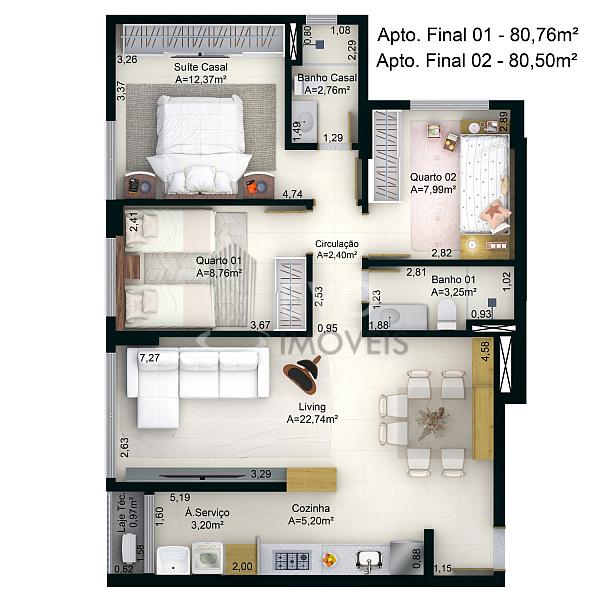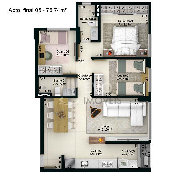 2 dormitórios (1 suíte)