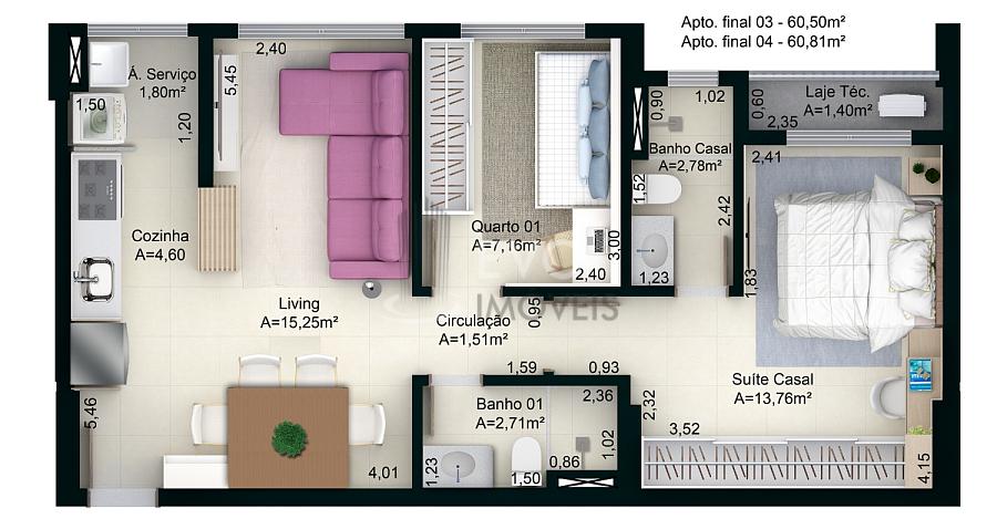61,00 m² de área privativa