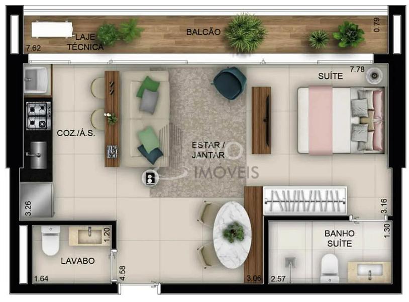 1 dormitório (1 suíte)