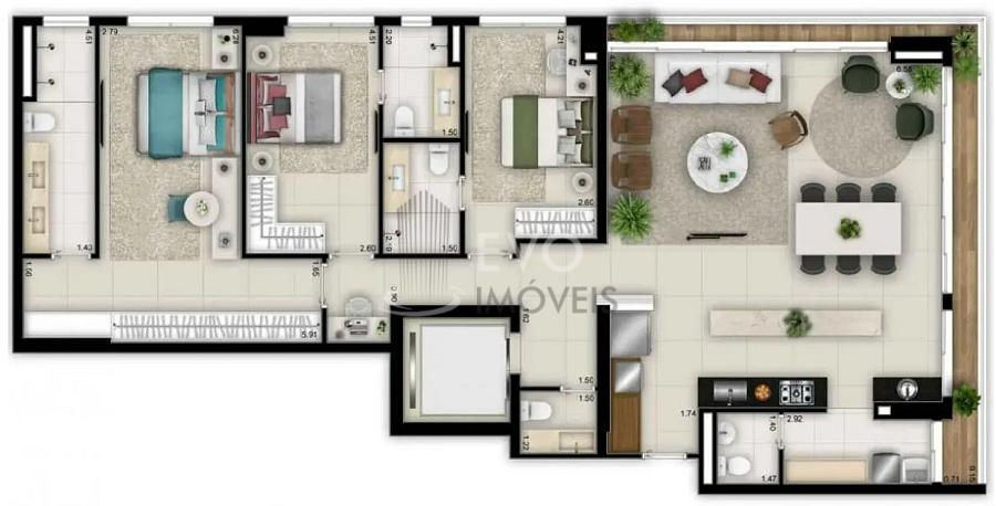 3 dormitórios (3 suítes)