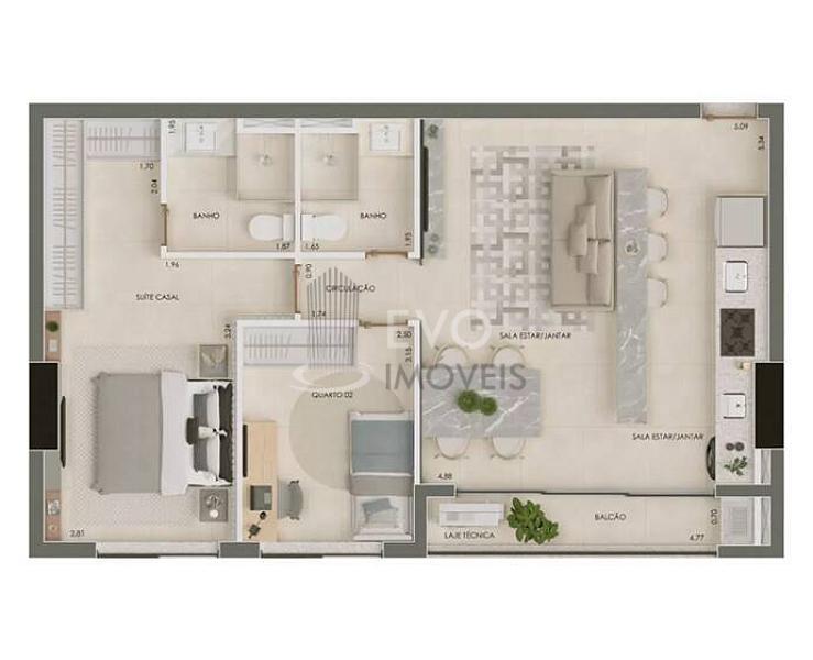 2 dormitórios (1 suíte)