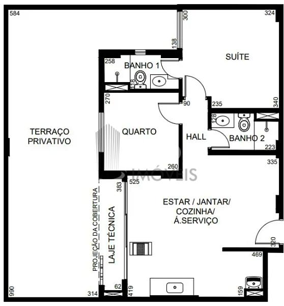 2 dormitórios (1 suíte)