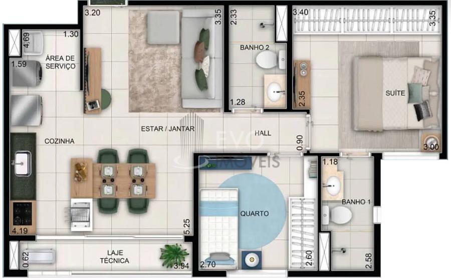 62,00 m² de área privativa